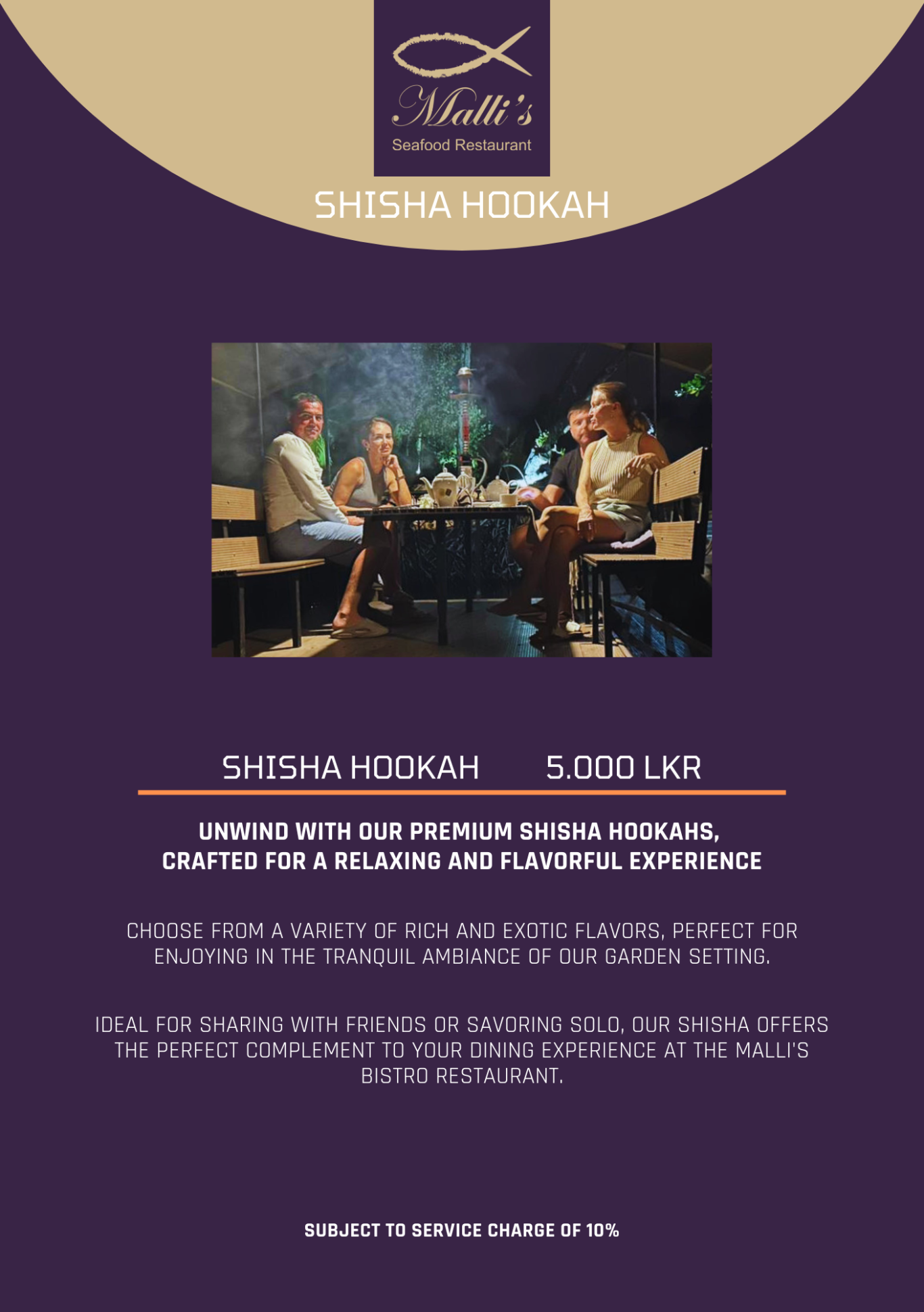- After savoring delightful snacks, seafood, international and Sri Lankan dishes at The Malli’s Bistro, you can retreat to your private room for a restful night, all at affordable rates and with warm Sri Lankan hospitality.
